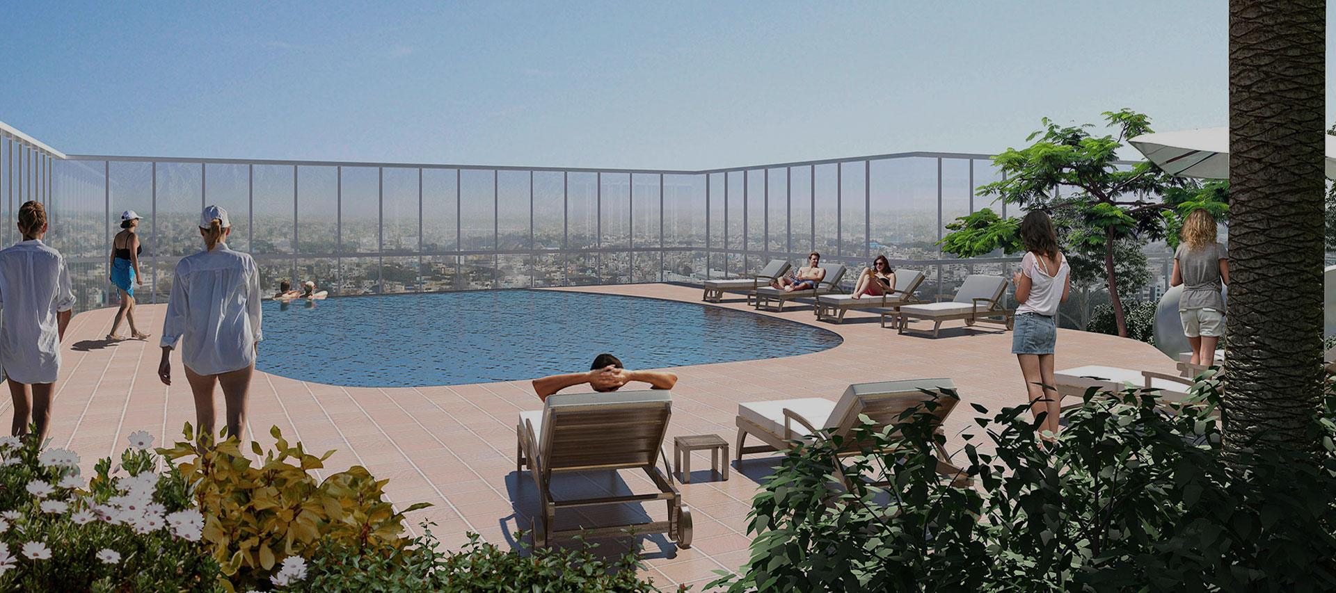 The Presidential Tower, in Bengaluru, is a 50-storey building of three and four-bedroom residential apartments which offer breathtaking views over the city. Exclusive five bedroom ‘sky’ villas occupy the top four floors, and the top floors have a ‘sky’ park with an infinity pool, fitness centre and helipad.